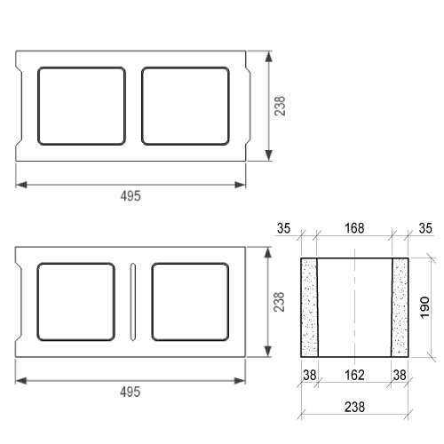 Patstoneroc 240 dobtie betona bloki piemēroti lielu slodžu nestspējas nodrošināšanai, piemēram, pamatiem un nesošajām sienām.