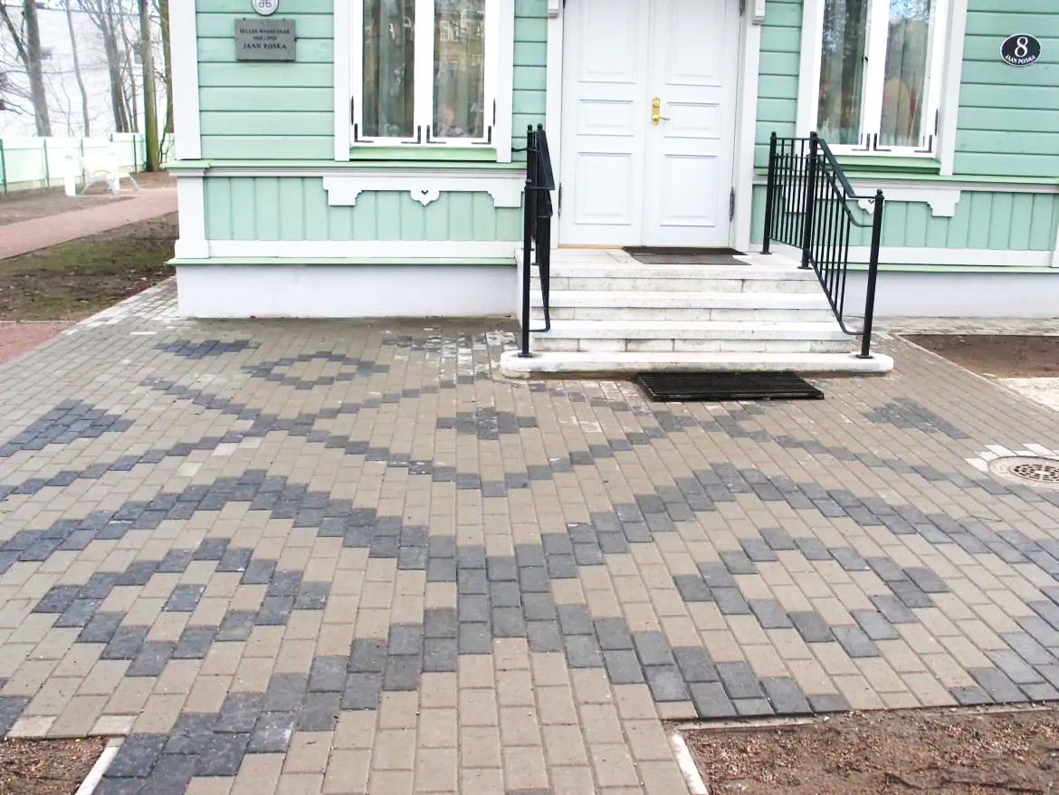 NUNNA bruģis piemērots dažādu rakstu kombināciju izveidei, kas piešķir mājas ieejai individuālu risinājumu. Bruģa forma, toņu spēle un izveidotais dizains lieliski sasaucas ar ēkas klasisko arhitektūru.